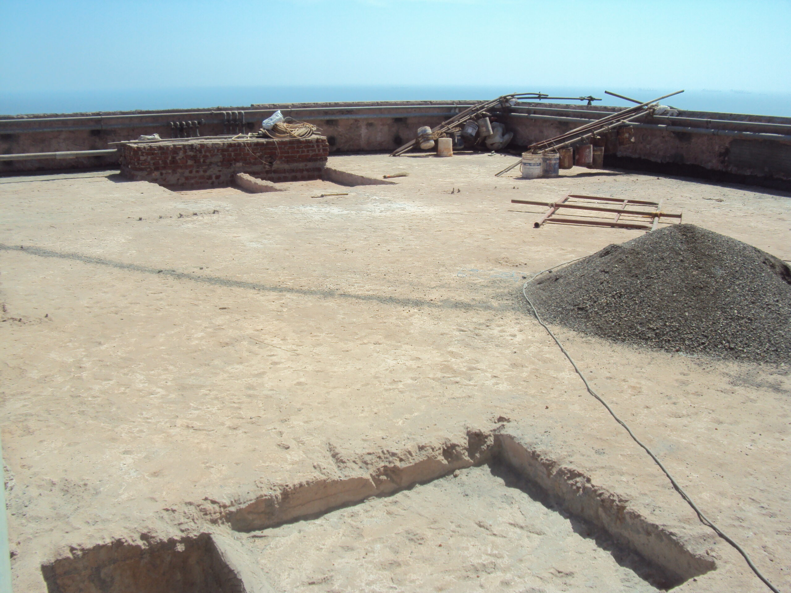 Tying Safety NetsBreaking Terrace WaterproofingCasting Ferro Cement ChajjaCleaning RCC SurfaceCleaning Sand MaterialConcreting Above Weldmesh on TerraceDamaged ColumnDr Fixit NewCoat ApplicationFinal FinishFixing Weldmesh Jali After CleaningIPS Above Brick BatLeveling After Weldmesh FixingLift Hoist for Materials and DebrisMaking Mortar for ConstructionShuttering InstallationAfter De-shuttering ProcessAfter Filling and De-shutteringBreaking Old WaterproofingCuring ProcessMembrane System WaterproofingRCC Grill InstallationTraffigard Coating ApplicationTying Steel BarsWindow Step Sill CastingBrick Bat Koba ApplicationFixing China Mosaic TilesWindow Step Sill ShutteringFixing Kota Stone on Window Step Sill